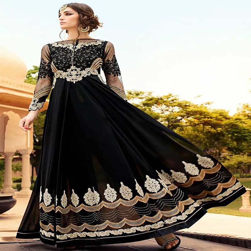 Color: Black Style: Anarkali Suit Work: Embroidered, Stone Work, Patch Border Work, Zari Work Fabric: Faux Chiffon, Pure Georgette, Pure Santoon Occasion: Party, Wedding, Reception
