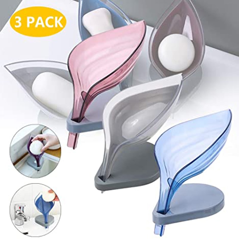 Material: PP Color: As show Shape: leaves Occasion: bathroom PP plastic, durable and environmentally friendly A very helpful Soapbox for family use Convenient and tidy decor for bathroom and kitchen use Simple style, fashionable and generous. With suction cup at the bottom, it will not slide easily At the bottom of the hollow out,no water Detachable design, multi-purpose.