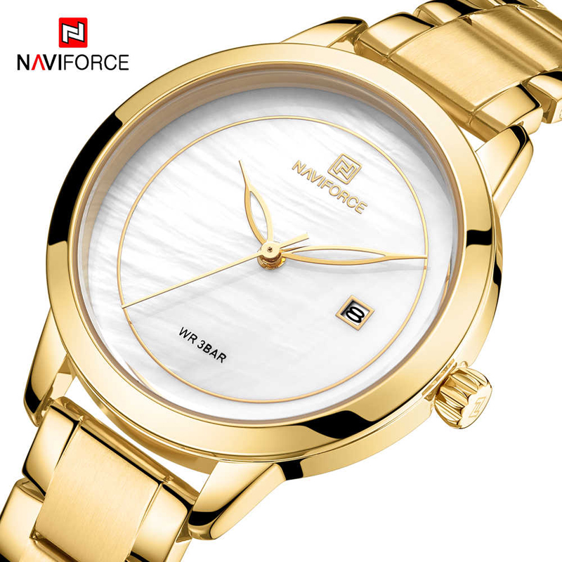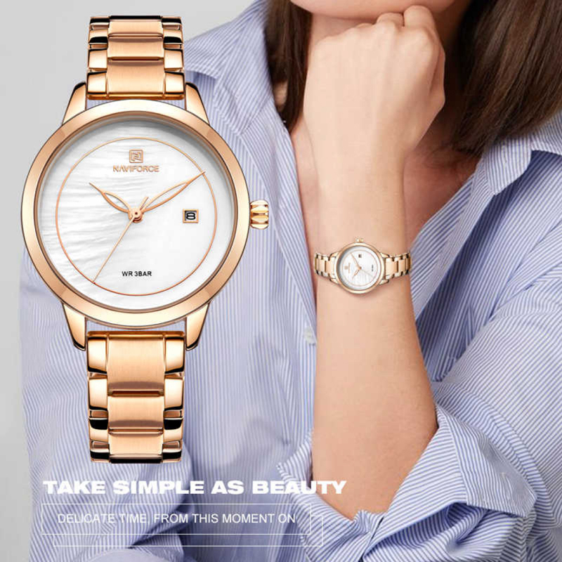 Brand Name: NAVIFORCE Movement: QUARTZ Water Resistance Depth: 3Bar Clasp Type: Bracelet Clasp Style: Fashion & Casual Case Material: Alloy Boxes & Cases Material: No package Feature: Complete Calendar Feature: Water Resistant Band Material Type: Stainless Steel Dial Diameter: 33mm Model Number: NF5008 Band Length: 19cm Dial Window Material Type: Hardlex Case Thickness: 8mm Band Width: 14mm Case Shape: Round Product Weight: 57gv Gender: Women & Female