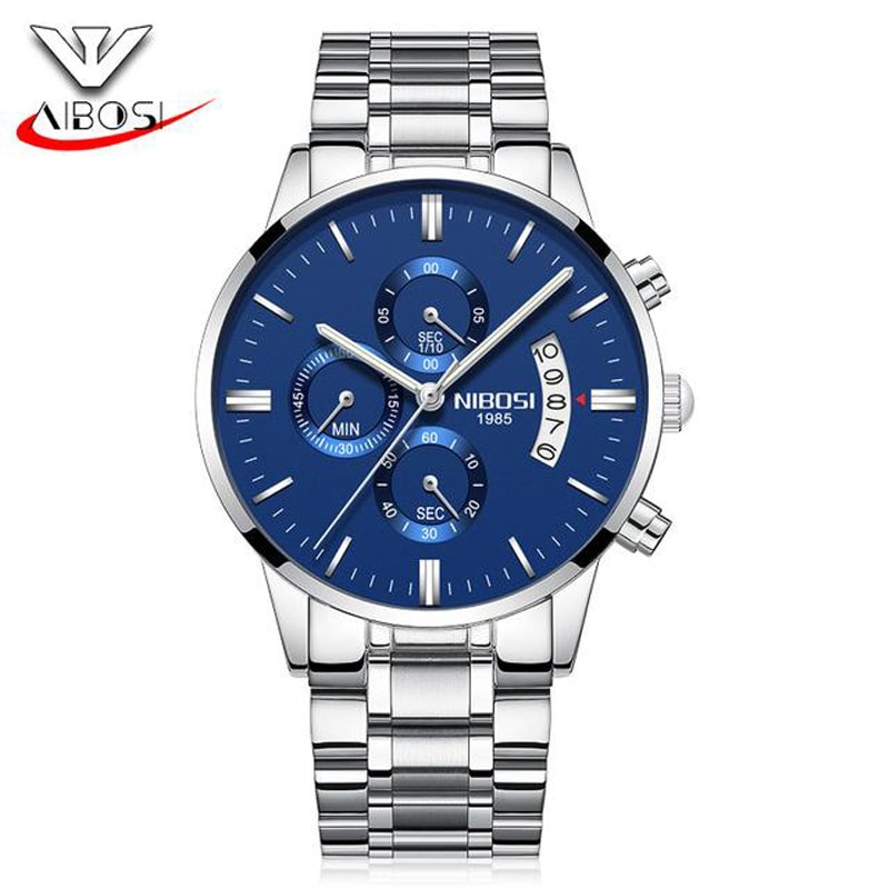 Brand Name:NIBOSI Item Type:Quartz Wristwatches Band Width:22mm Feature:Complete Calendar,Luminous Hands,Water Resistant Clasp Type:Push Button Hidden Clasp Movement:Quartz Style:Dress Case Thickness:10.5mm Case Shape:Round Water Resistance Depth:3Bar Boxes & Cases Material:Paper Dial Window Material Type:Hardlex Dial Diameter:43mm Band Length:7.87inch Band Material Type:Stainless Steel Case Material:Stainless Steel Relogio nibosi Color:Gold Watch,Blue Watch,Black Watch,Gold and black watch Relojes Hombre 2018 Stype:Fashion Watch,Casual Watch,Business Watch,Luxury Watch Relojes para hombre Stock:NIBOSI Original Male Watch luxury Gender for Kol Saati:Male / Man / Boy / Unisex /Relogio Masculino Package Contents:Quartz Watch, Elegant Watch Box, English Instructions,Warranty Card Dials Of The Wathces:All of Sub-dials are good working Special Features:1/10 Chronograph Watch Men; Luminous Hands; Waterproof/Calendar Date Dress Watch Style:Militry / Dress / Business / Casual / Sports Gift for holiday:Marriage, adult ceremony, birthday, Christmas, New Year, Black Friday Stock:NIBOSI Original Analog Quartz Watch