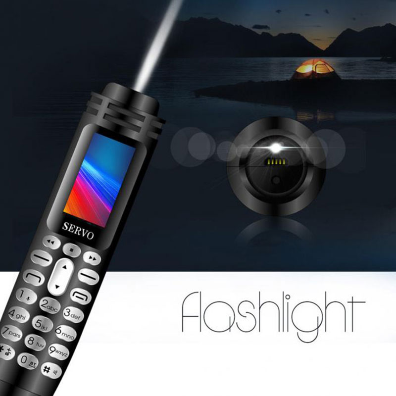 Features Bluetooth Dialer, Sync contacts, you can receive incoming call number/ contact announcement. 0.96 inch Tiny Screen. Healthy living ultra-low radiation. 10m Bluetooth control distance. Dual SIM cards Dual standby (2 Nano SIM card). Recording Pen, Calendar, Alarm, Calculator, E-book, MP3, MP4, 0.3MP Camera, Display Resolution 80*160P. Memory card, maximum support 32GB expansion. Language: English, Russian, French, Italian, Arabic, German, Spanish, Portuguese, Vietnamese, Turkish, Hebrew, Polish. Specifications Model SERVO K07 Band 2G, GSM850/900/1800/1900MHz Sim Card Dual SIM card Dual standby (2 Nano SIM card) Style Bar Service Unlocked Platform MTK Housing Materials Metal ROM 32MB RAM 32MB Card Extend Support TF card up to 32GB (not included) Display Size 0.96-inch Camera Single camera, 0.3MP back camera Ballpoint Pen 4 ballpoint pens can be used instead FM Radio Yes Bluetooth Dialer Yes Sync Contacts Yes, you can receive incoming call number/ contact announcement Bluetooth Control Distance 10m Flashlight Yes Recording Function Yes, Long press“1” to enter Whatsapp Yes Phone Book 500 Battery 300mAh battery Talk Time up to 7h Other Features Calendar, Alarm, Calculator, E-book, MP3, MP4 Dimensions 117 x 21mm Weight 33g