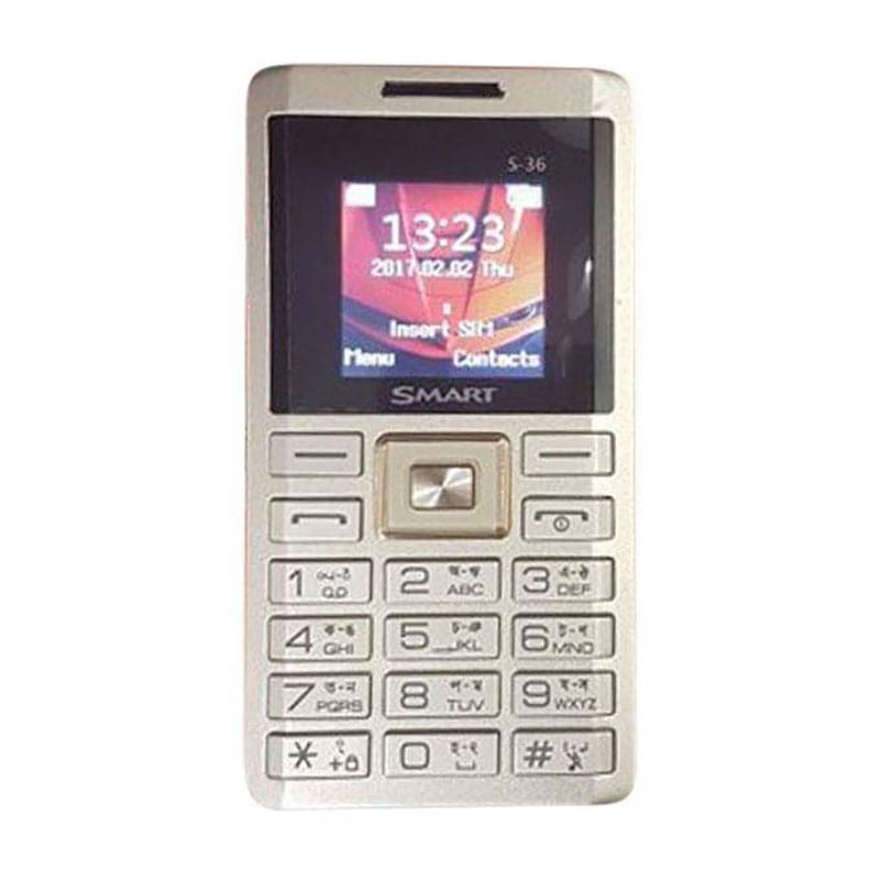 র্যান্ড: Smart মডেল: S-36 SIM সাইজ: মাইক্রো সিঙ্গেল SIM ফিচার: কল রেকর্ডিং, ব্লুটুথ, FM রেডিও, স্টপ ওয়াচ, নোটবুক, ক্যালকুলেটর, এলার্ম, ফেসবুক ডিসপ্লে:1.44 ইঞ্চি ডিসপ্লে রেজ্যুলেশন: 128 x 128 (TFT LCD ডিসপ্লে) ডিসপ্লে টাইপ: QQVGA ক্যামেরা: ব্যাক- 2 MP উইথ ফ্ল্যাশ লাইট, ফ্রন্ট ক্যামেরা নেই ভিডিও রেকর্ড করা যাবে স্টোরেজ: RAM < 32MB + 32MB মেমোরি কার্ড ব্যবহার করে 16GB পর্যন্ত মেমোরি বাড়ানো যাবে ব্যাটারি ক্যাপাসিটি: 600 mAh টক টাইম: সর্বোচ্চ 8 ঘন্টা স্ট্যান্ডবাই টাইম: 72 ঘন্টা ডাইমেনশন: (HxWxD) 95.6 x 53 x 5.9 mm ওজন: 40 গ্রাম এক বছরের ওয়ারেন্টি