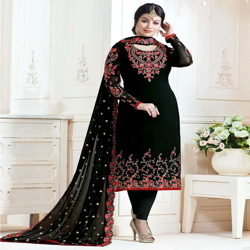 OCCASIONS Cocktail, Festival, Party, Traditional FABRIC Georgette STYLE Designer, Partywear, Traditional WORK Embroidered, Stone Work BOTTOM TYPE Unstitched DUPATTA FABRIC Nazmin,Embroidered,Lace Work,Stone Work SALWAR FABRIC Santoon STITCHING TYPE Semi Stitched HAS DUPATTA Yes TOP LENGTH 44" WASH CARE Dry Clean